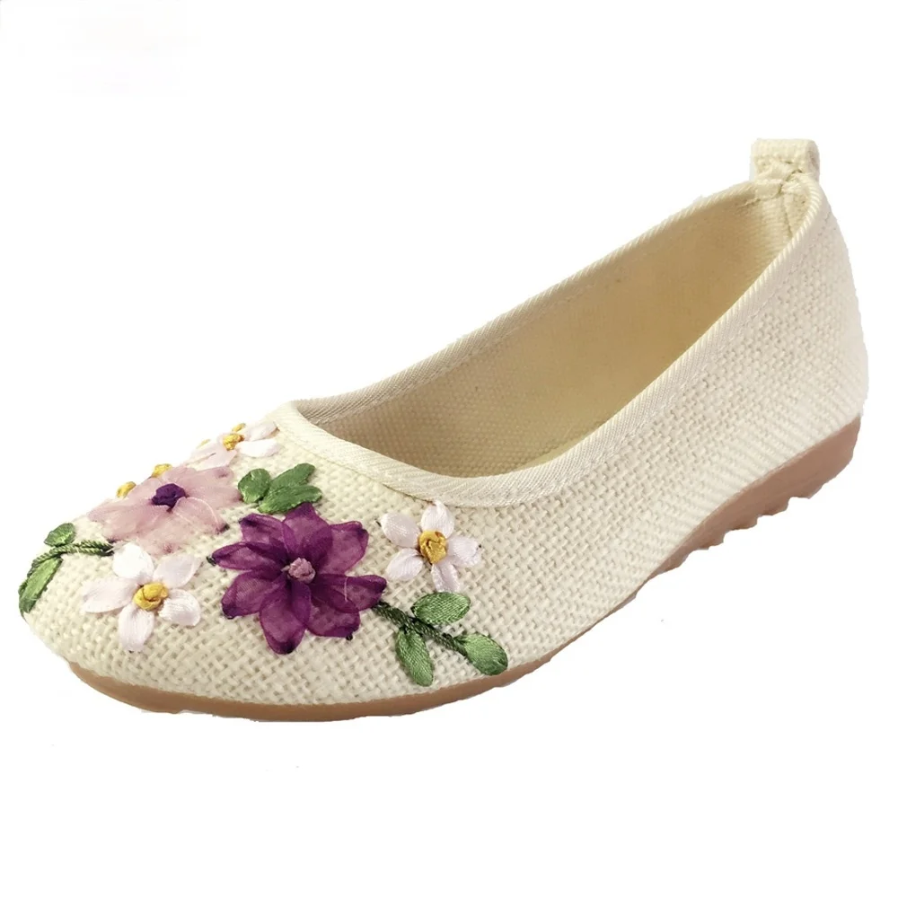 Vintage Embroidered Women's Flats Flower Slip on Cotton Fabric Linen Comfortable Old Peking Ballerina 2022 Shoes Sapato Feminino