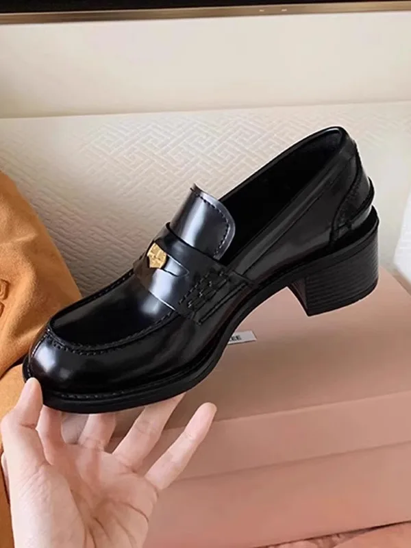 eepskin Version Zhang ng Gold Coin Little oes Women's Chunky Heel Heightening Slip-On Aimiu Lazy Loers Flats