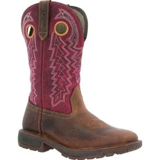 Rocky Women's Legacy 32 Soft Toe 11in Western Work Boots - The Rocky Legacy 32 takes a classic western silhouette and adds the latest in comfort and technology. These women's 11-inch Brown and magenta square toe boots are designed to offer all-day...