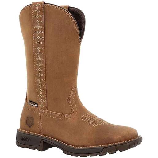 Rocky Women's Rosemary Composite Toe Waterproof 11in Western Work Boots - Rocky's exclusive women's western collection - the Rocky Rosemary. The perfect mix of fashion and work, this 11-inch brown and turquoise boot features a light and flexible...