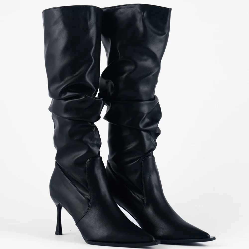 Pleated Matte Leather Slouchy Boots Sexy Pointed Toe Stiletto Solid New Arrivals Fashion Women Modern Boots
