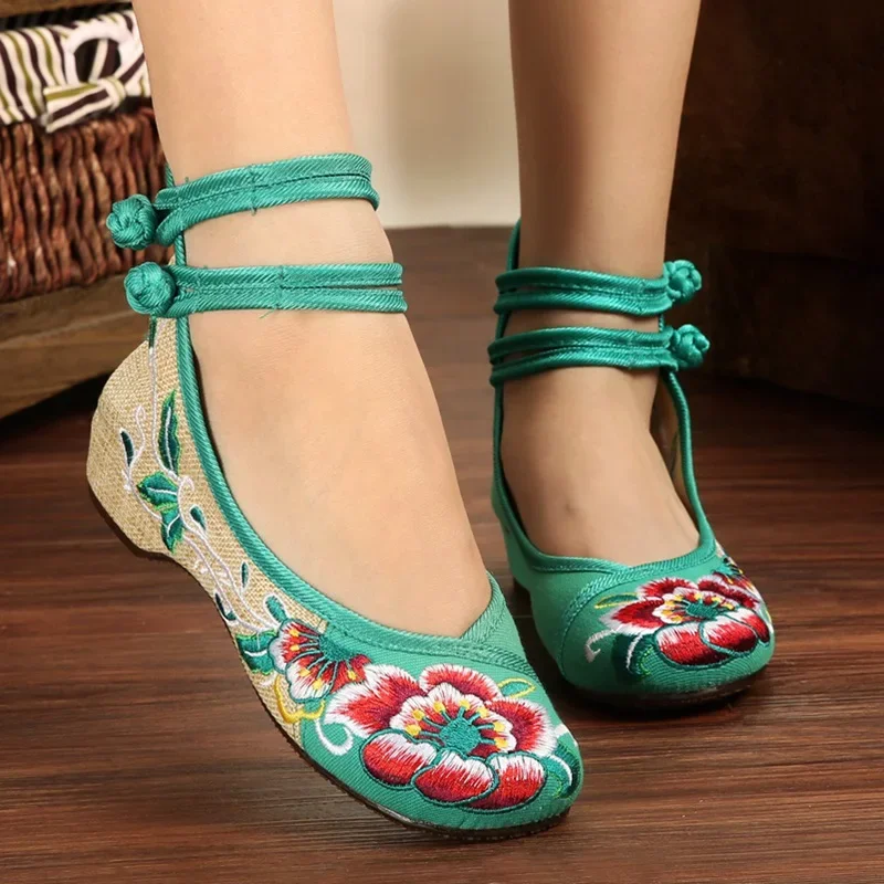 Vintage Handmade Women's Embroidered Canvas Ballet Flats Ladies Comfortable Chinese Ballerinas Vegan Embroidery Shoes