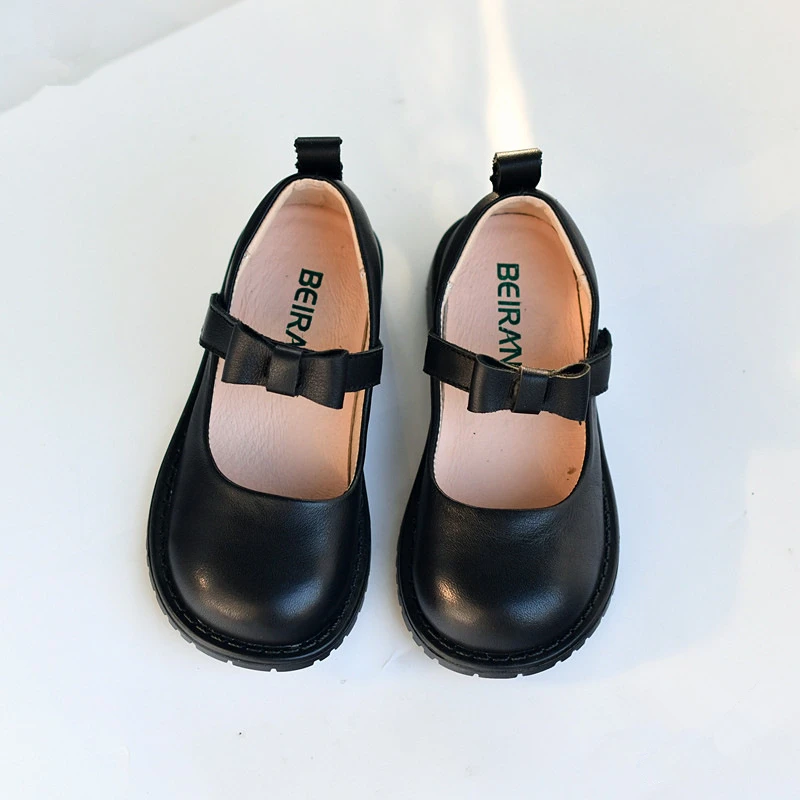 Genuine Leather Girls school Shoes Full grain Leather Lolita style Lovely Bow Children's casual Shoes Spring Autumn Kids Flats