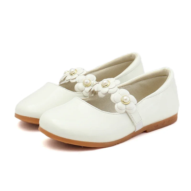 Girls Leather Shoes Floral Kids Flats with Flowers Princess Sweet Soft High Quality Children Dress Shoes for Wedding Party 26-36