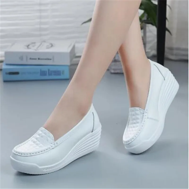 Women's Shoes New Women's Genuine Leather Sneakers Platform Shoes Wedges White Lady Casual Flats Comfortable Mother Shoes
