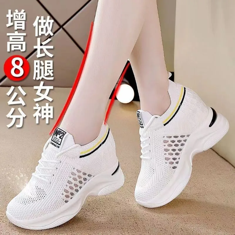 Women Mesh Breathable Casual Sneakers Women Spring Platform Heels Wedges Height Increasing 2024 Knitted Ladies Vulcanized Shoes  Read more