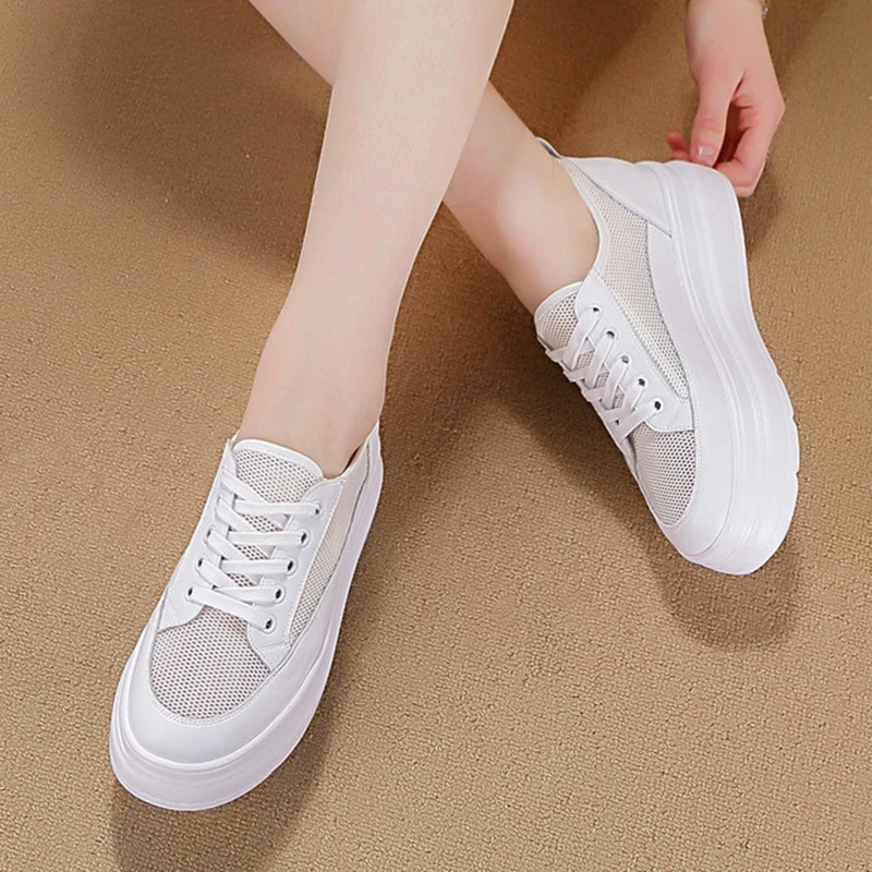 Women Vulcanize Shoes Platform Casual Sneakers Shoes Flats Mesh Breathable Running Shoes Chunky Summer Sports Shoes 2023