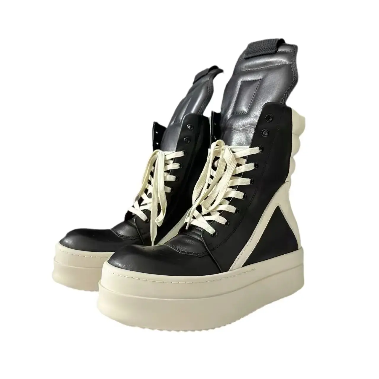 Men High Top Platform Motorcycle Shoes Lace Up Genuine Leather Women Boots Luxury Sneakers Black Male Designer Shoes