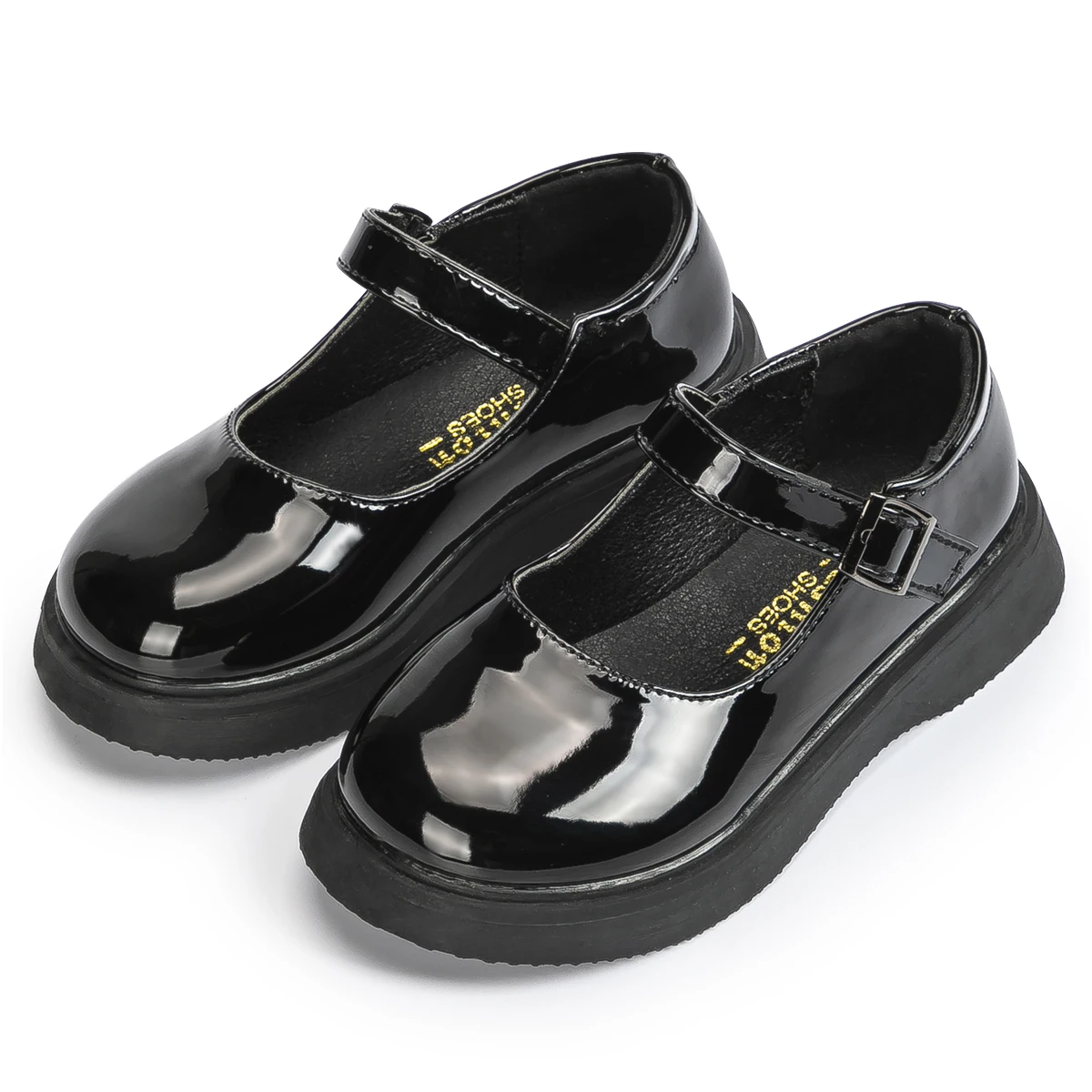 KIDSUN SIZE 26-35 Kids Girls Shoes Flats Comfort Shiny Rubber Oxford School Uniform Shoes Black Shallow Party Dress Casual Shoes