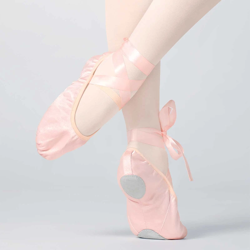 Girls Satin Ballet Shoes Pink Women's Ballet Shoes Strap Ballet Flats Soft soled Dance Shoes For Practice Performances Ballerina