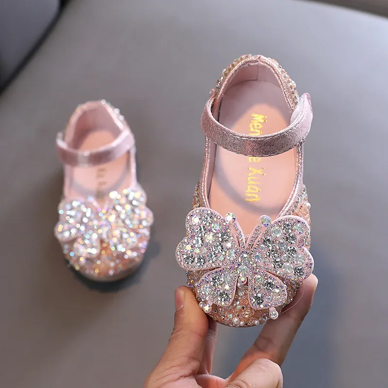 Children Princess Shoes Glitter Party Wedding Shoes for Girls Fashion Rhinestone Toddlers Ballet Flats Causal Kids Leather Shoes  Read more