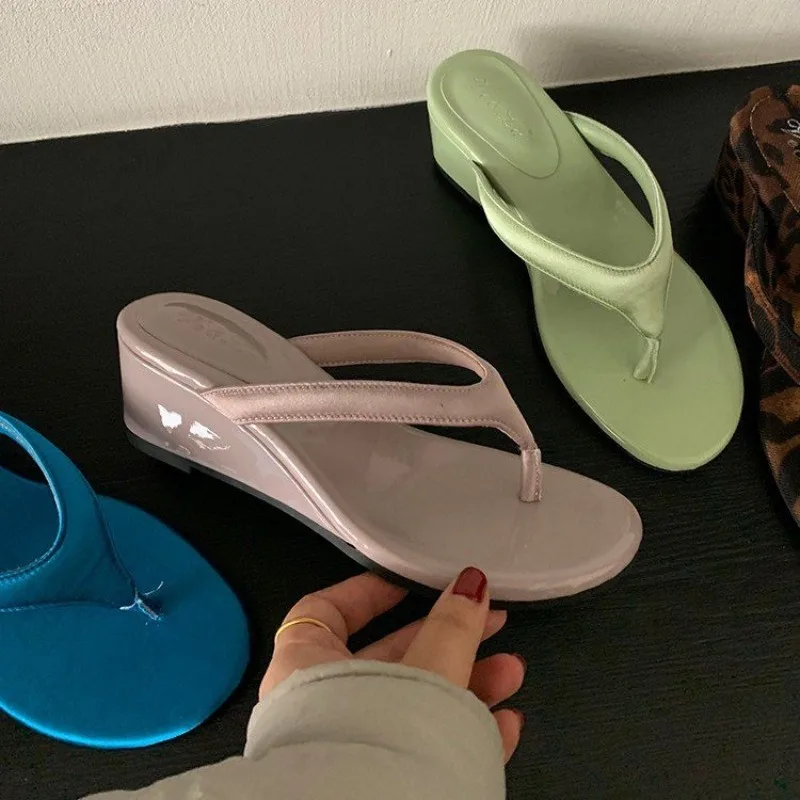 Fashion temperament wedge flip-flops women's wear 2025 new summer hundred with thick soles increase toe sandals  Read more