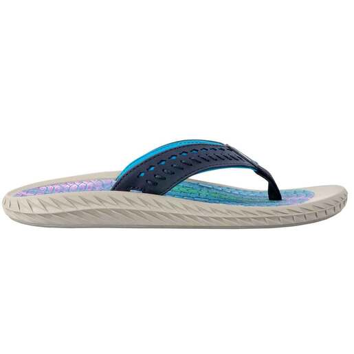 Korkers Women's Fish Flip Flops - An essential beach sandal made with cushioned, water-resistant sandal materials that will make your feet feel at home. Non-marking Kling-On Deck rubber outsole Double stack midsole design Anatomical molded footbed...