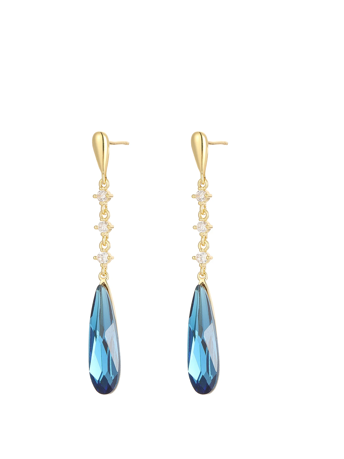 European and American Fashion Personality Retro Elegant Women's Mid Length Blue Zircon Water Drop Earrings