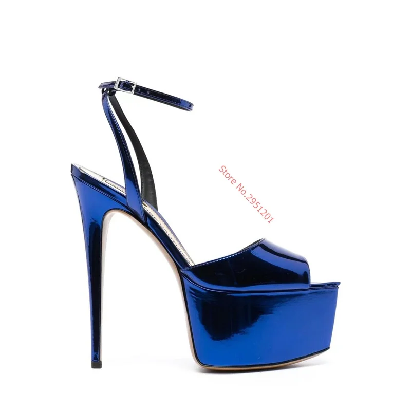 Sexy Peep Toe Party Nightclub Sandal Stripper Pole Dance High Heels Women Platform Sandals 14CM Stiletto Shoes Blue Size 43