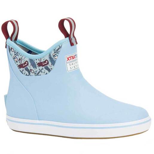 Xtratuf Women's Salmon Sisters Ankle Deck Rubber Fishing Boots - This ankle deck boot has original prints designed by the Salmon Sisters and has all the Xtratuf features you know and love. Recommend half sizes order up 100% Waterproof Slip-Resistant...