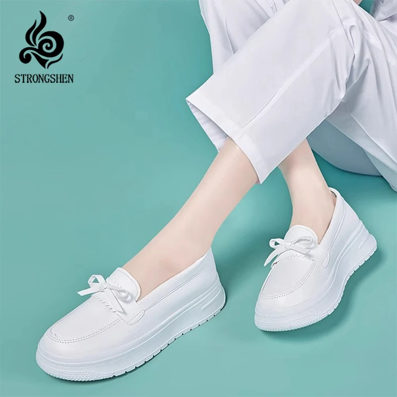 STRONGSHEN Women Nurse Shoes Comfortable Soft Sole Breathable Non-slip Wedge Heel Casual White Shoes Work Shoes Zapatos Mujer