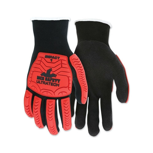 MCR Safety UT1950 UltraTech Impact Level 1 Mechanics Knit Gloves, Large, Hi-Vis Red TPR, Black Coating/Shell (127-UT1950L)