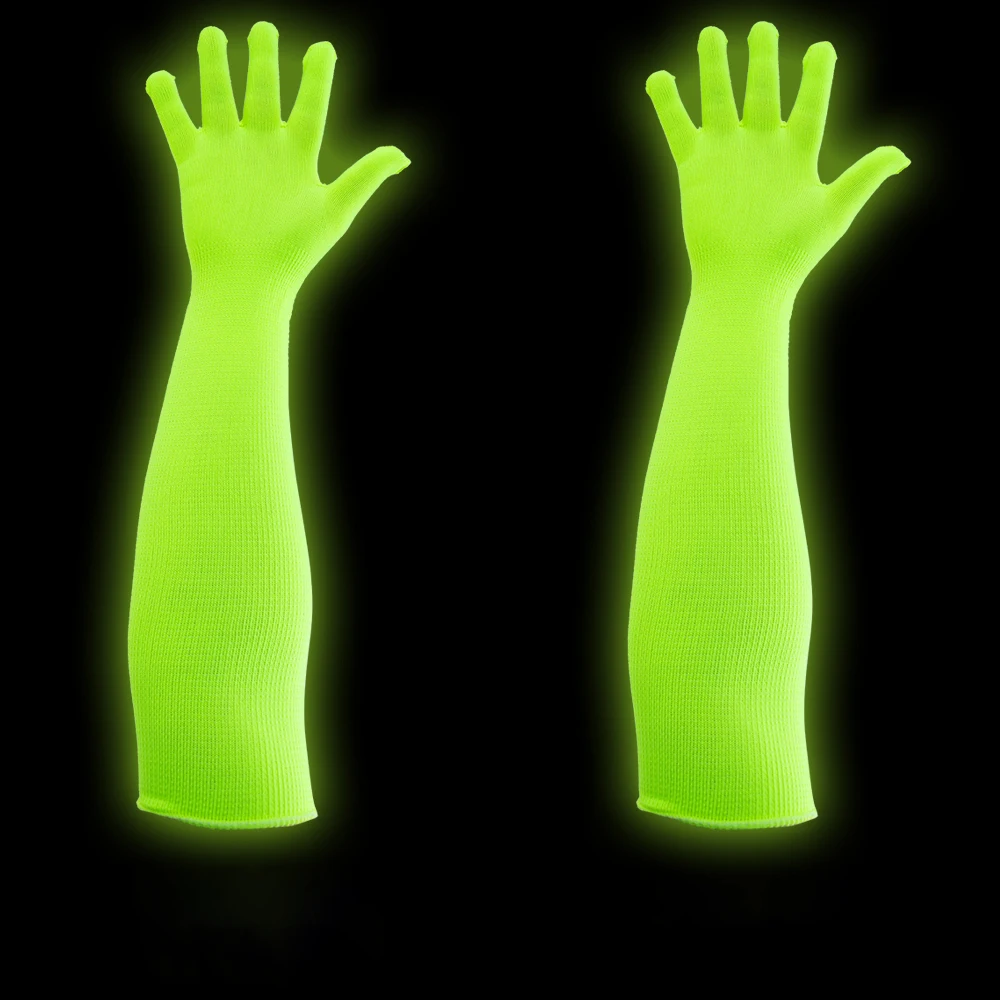 2/4pairs Fluorescent Long Green Glow in Dark Gloves Blacklight Reactive Party Supplies Birthday Concert Glowing Hand Accessories