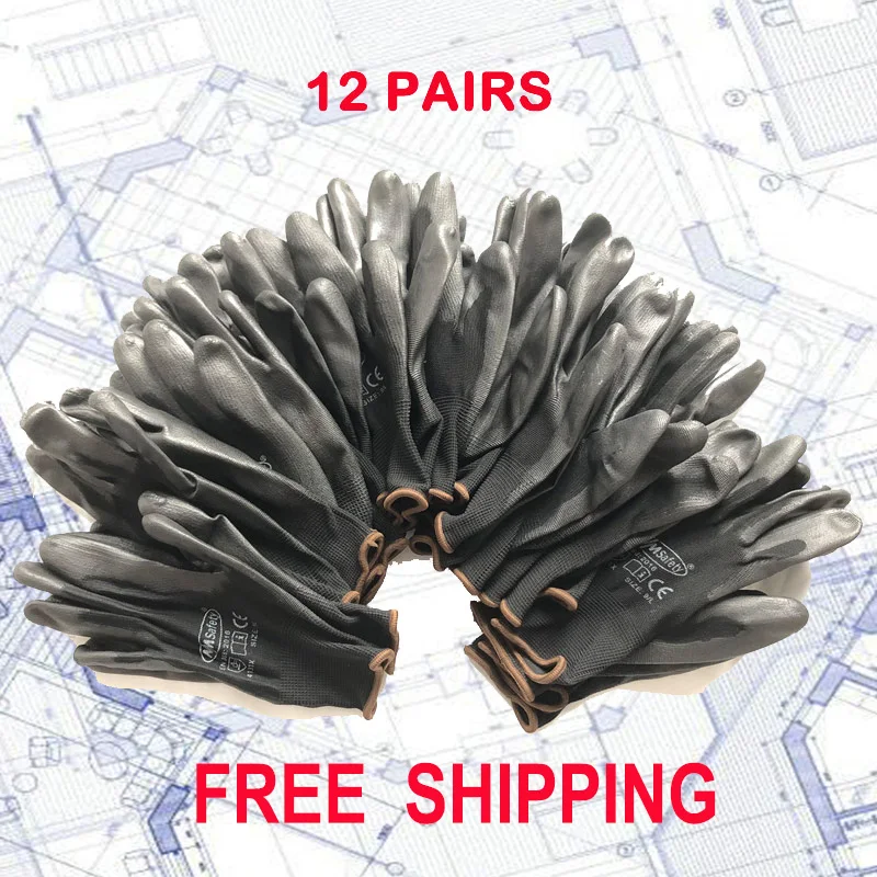 NMSAFETY 12 Pairs/ 24pcs Knitted Safety Work Gloves Construction Security Garden Rubber Industrial Working Gloves