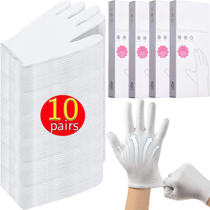 1-10 Pairs White Soft Cotton Unisex Gloves Coin Jewelry Inspection Gloves Stretchable Lining Gloves for Serving Waiters Drivers