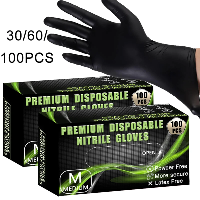 30/60/100PCS Disposable black nitrile gloves, waterproof black nitrile gloves for household cleaning, kitchen cooking tools