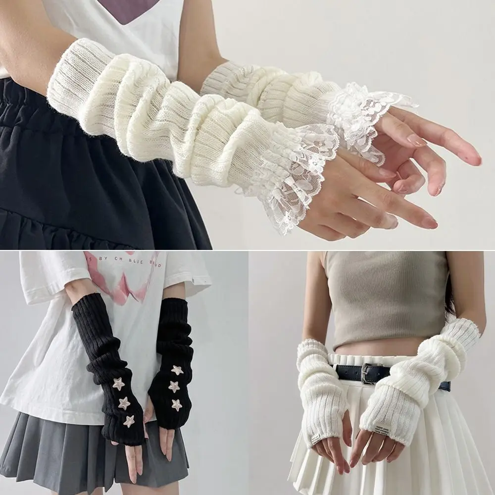 1Pair Fingerless Long Wrist Gloves Arm Warmers False Sleeves Knitted Gloves Finger Sleeves Cover Black White Half Finger Gloves