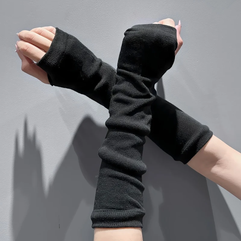 Fingerless Long Wrist Gloves Arm Warmers False Sleeves Knitted Gloves Finger Sleeves Cover Black White Half Finger Gloves