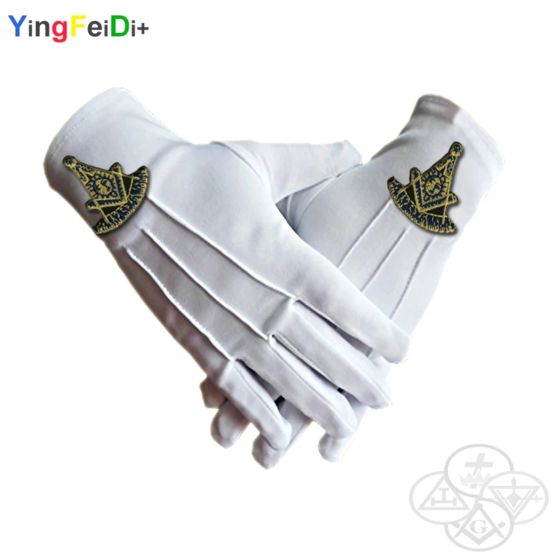 Past Masonic Masters embroidered high-quality polyester gloves- [White]