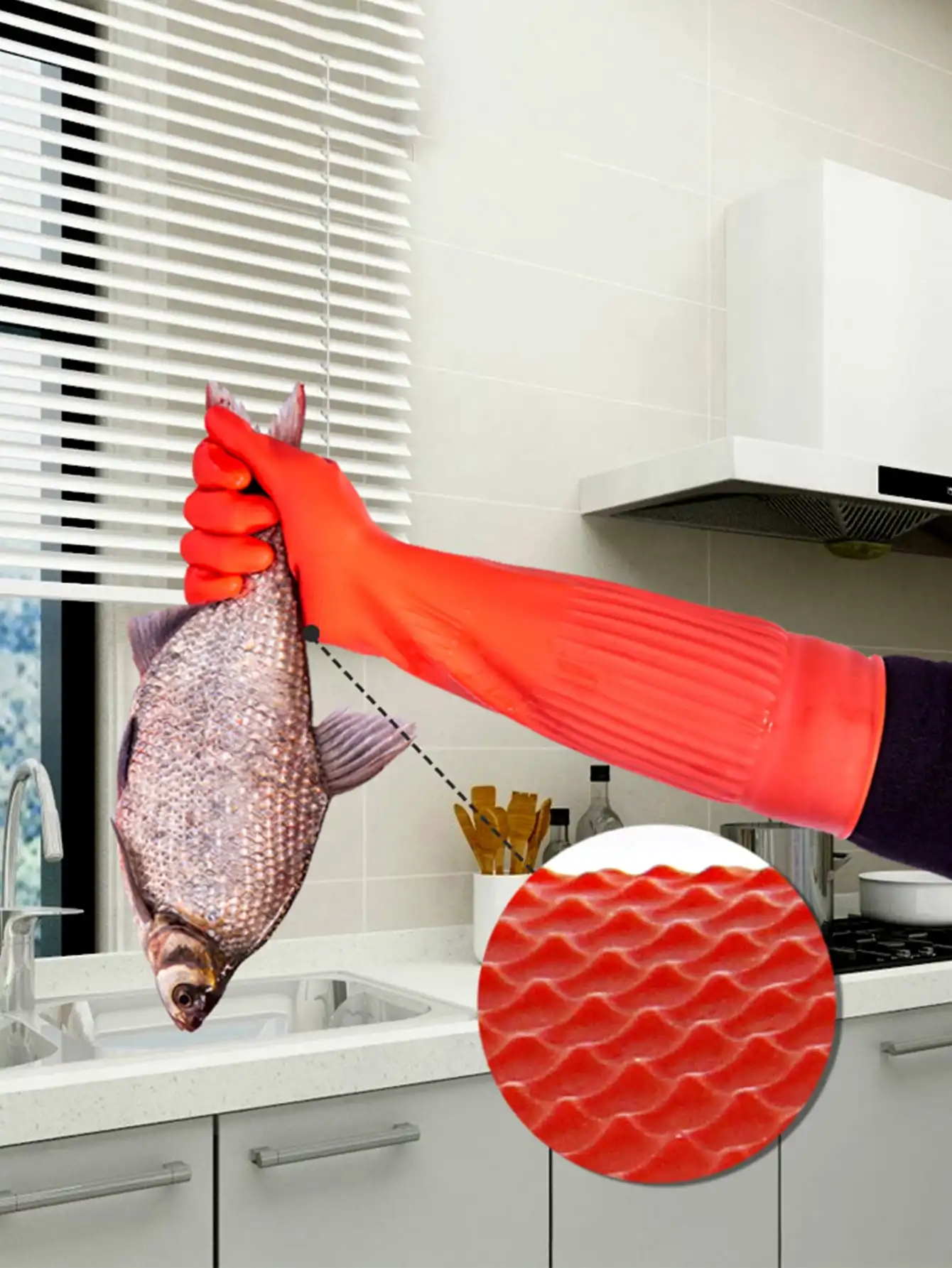 1 Pair Red Waterproof Anti-Slip Latex Gloves for Kitchen Dishwashing And Pot Cleaning - Durable Cleaning Gloves  Read more