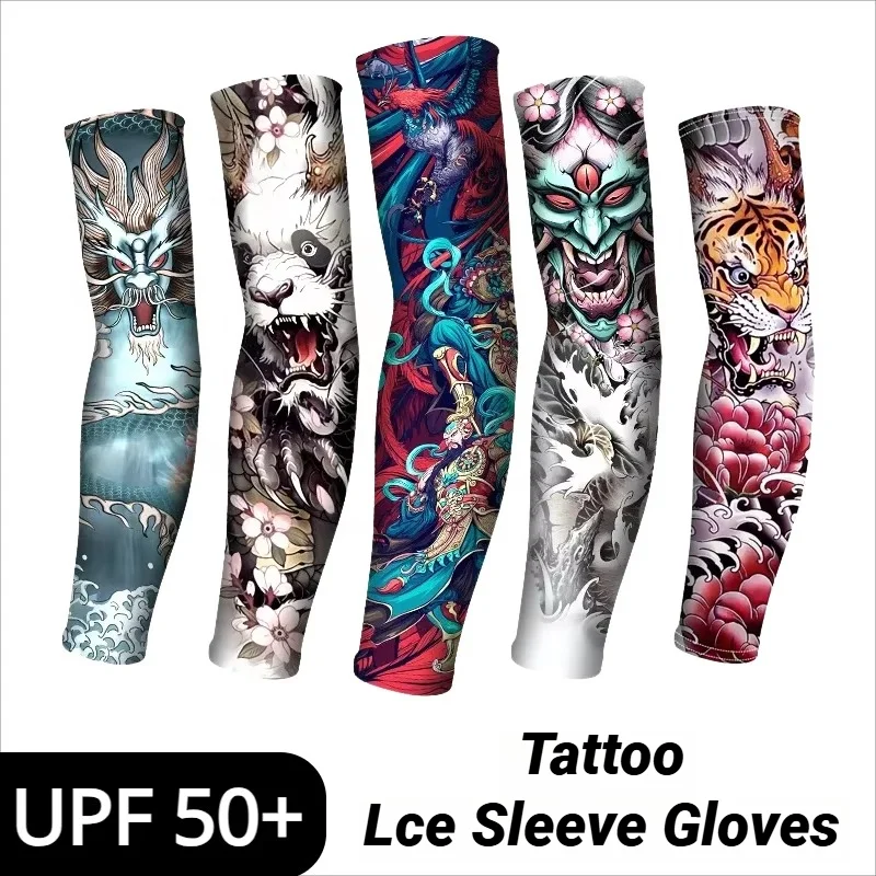 1 Pair Tattoo Sleeves Men Long Summer Seamless Armguard Sun Protection Cover Outdoor Gloves Driving Ice Silk Women Arm Sleeves