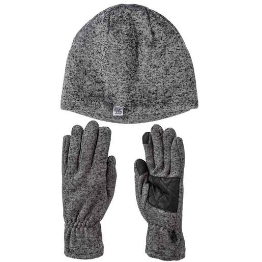 Rustic Ridge Men's Knit Hat and Glove Set - Will be sure to keep you warm all season long. With this hat and glove set, you will have all you need for the cold. Small Rustic Ridge badge on hat and left glove 100% Polyester 161.59g Style: FW21M080