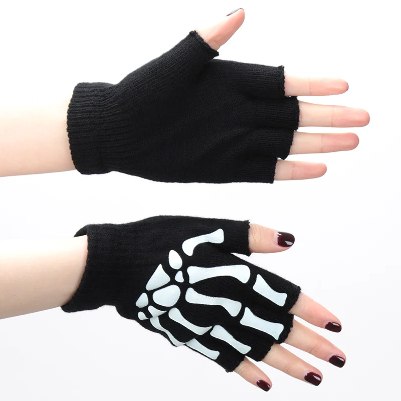 Skull Punk Gloves Black Neutral Half Finger Ghost Claw Knitted Gloves Exposed Finger Spot Nightlight Fingerless Elastic Gloves