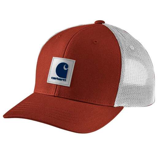 Carhartt Men's Canvas Logo Mesh Back Trucker Hat - Made for a hard days work. 100% Cotton washed canvas with 100% Polyester mesh back Sweatband wicks away sweat for comfort Structured, high profile cap with pre-curved visor Adjustable fit with...
