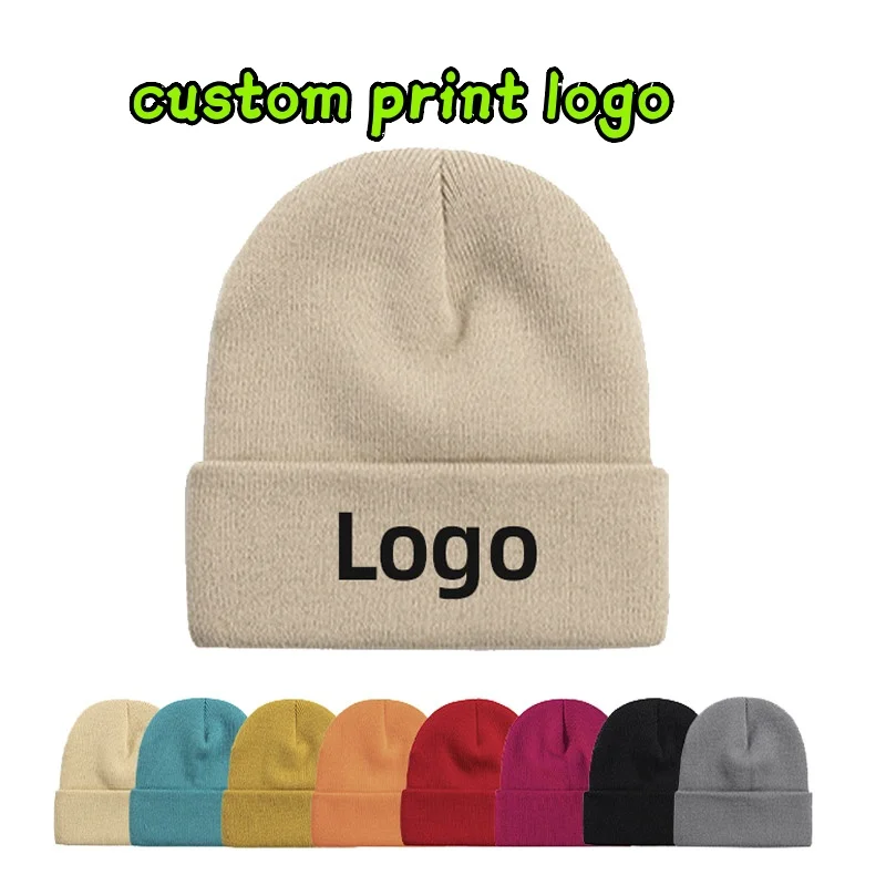 Custom Hat Print Your Own Logo Winter Knitted Keep Warm Cold Cap Unisex Solid Color Hip Hop Crochet Skull Beanie Hats