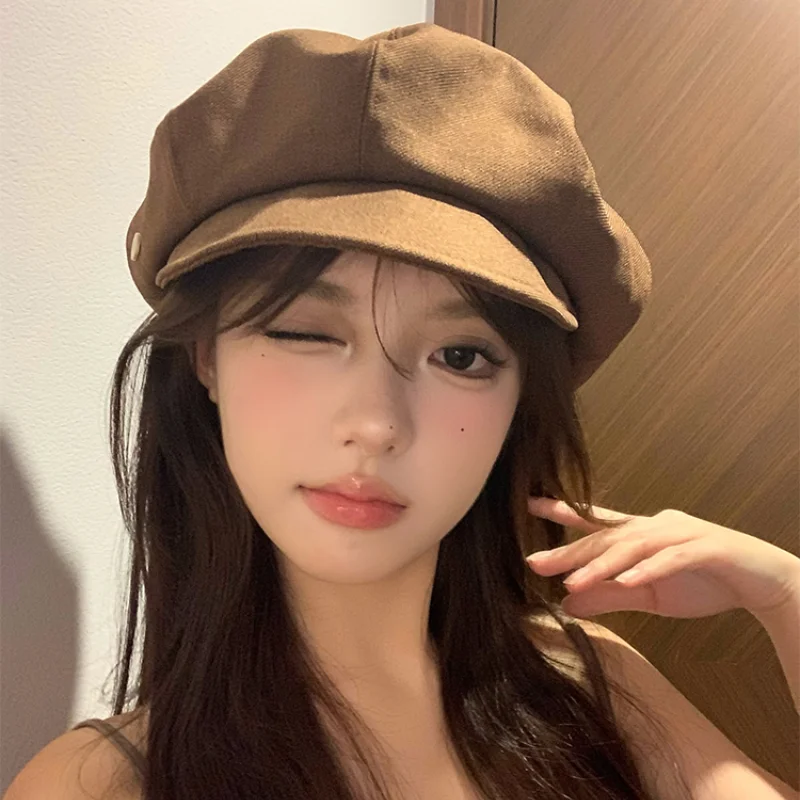 Simple Coffee Berets Caps for Wpmen Show Face Small Spring Autumn Casual Versatile Retro Japanese Literary Octagonal Newsboy Hat  Read more
