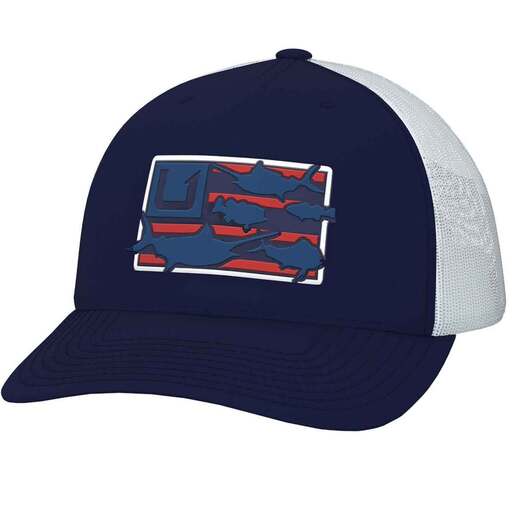 Huk Trophy Flag Trucker Hat - This mid-profile trucker has a 3D embroidered graphic patch and a dark gray undervisor to decrease glare. Additionally, it offers a moisture-wicking sweatband for comfortable wear. 60% cotton/40% polyester Mid-profile...