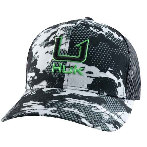 Huk KC Printed Trucker Hat - The KC Scott printed trucker hat features a 3D embroidered Huk logo on a fabric patch, along with a sleek dark gray under visor to combat glare and a moisture-wicking sweatband for all-day comfort. 3D embroidered Huk...
