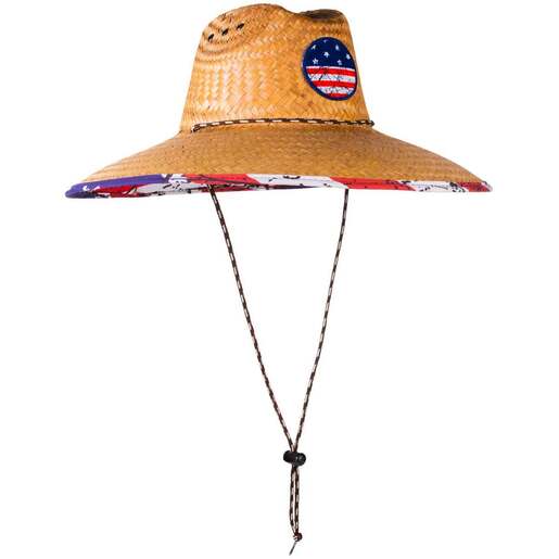 Peter Grimm Americana Straw Sun Hat - Designed for all day comfort and keeping the sun off of you in style. Sun hat style Waterproof Red, white, and blue patch on front with colored underbrim to prevent glare Drawstring chin strap Created using...