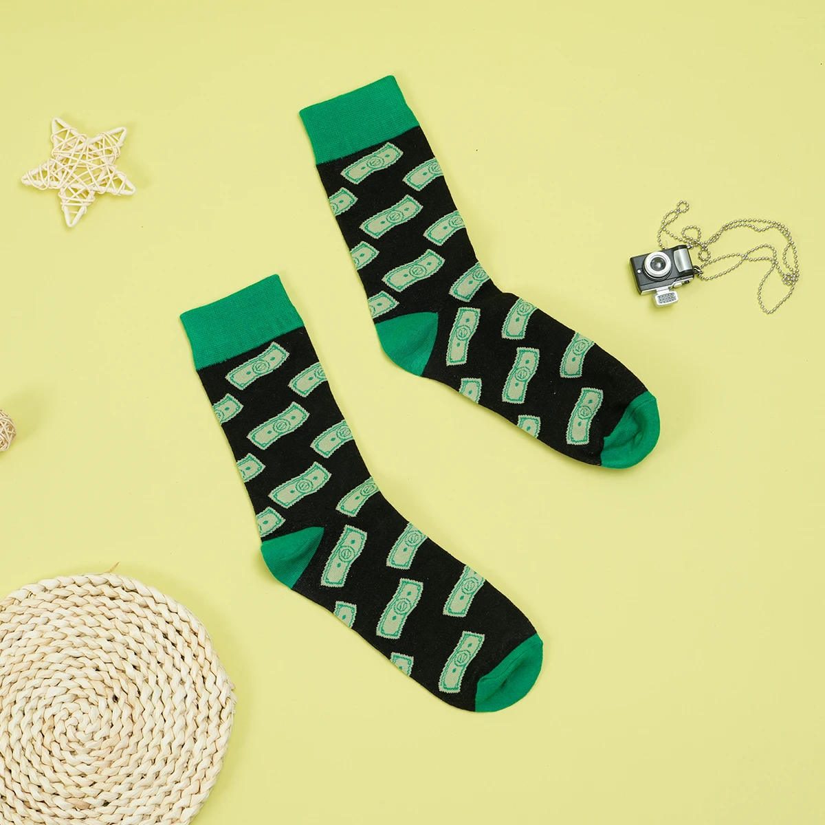 1 Pairs Creative Novelty Full Paper Money Printed Mid Tube Socks Suit In All Seasons For Daily  Read more