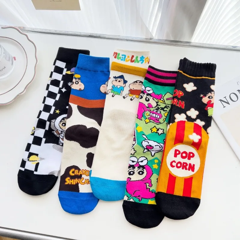 5 PairsCartoon Crayon Shin-Chan Socks Kawaii Anime Y2K Length Stockings Cotton Soft Breathable Medium In Tube Socks Couple Gift