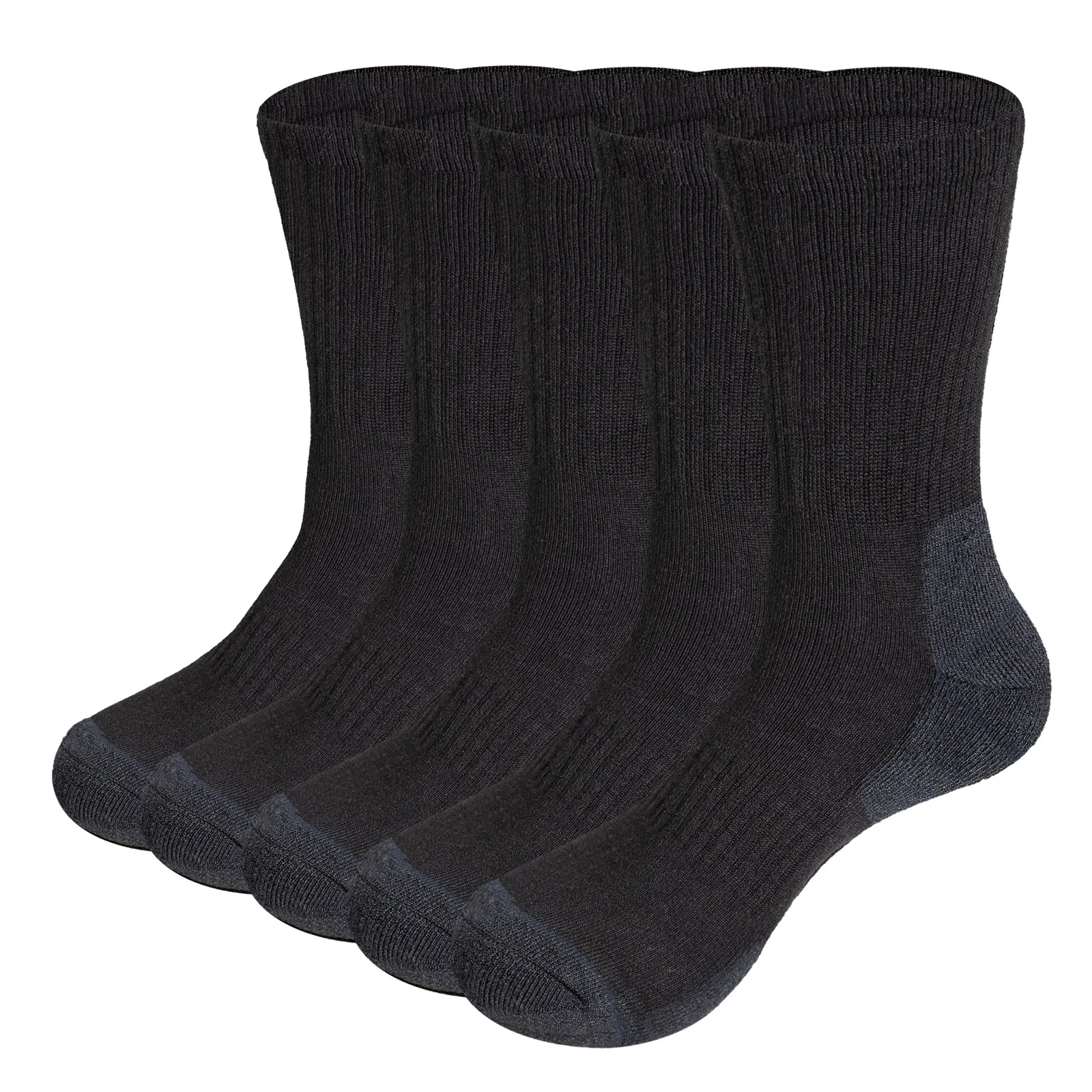 YUEDGE Mens Hiking Socks Moisture Wicking Cushioned Crew Socks Padded Work Boot Socks For Size 37-46, 5 Pairs