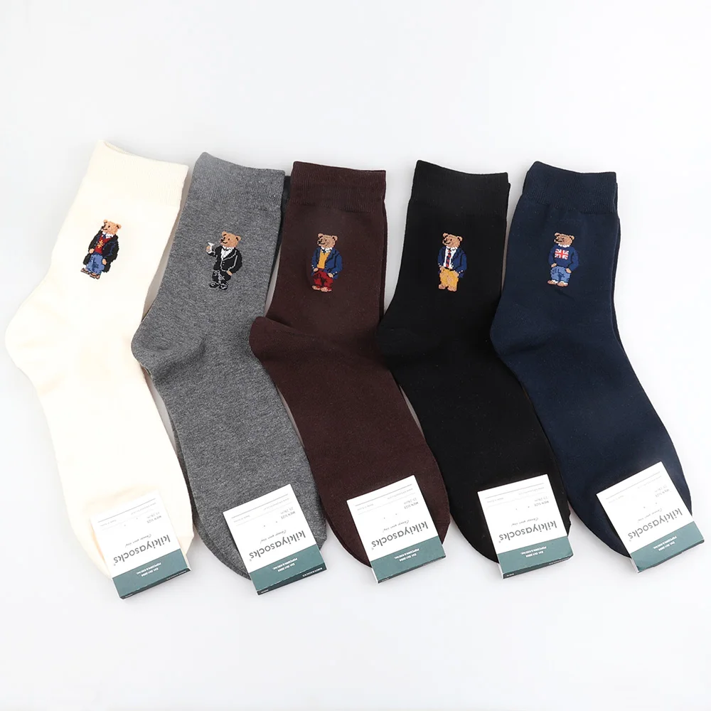 1 Pair Bear Men's Socks Simple Style Cotton Cartoon Gentleman Harajuku Skateboard Spring Winter Warm Novelty Breathable