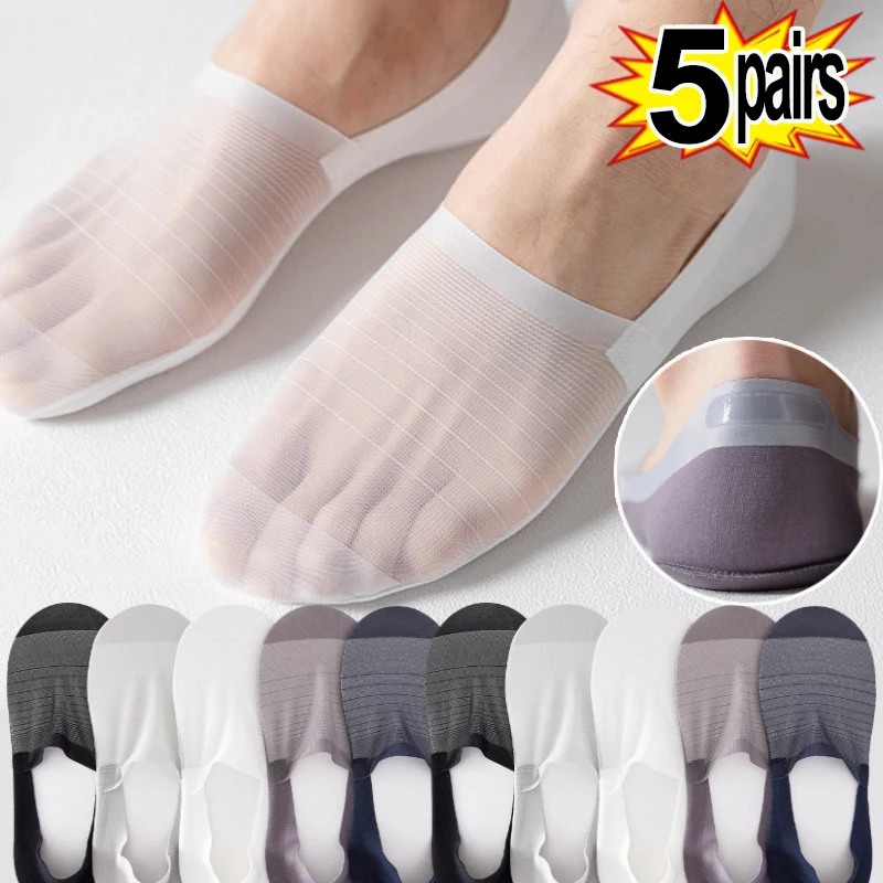 1/5pairs Men's Boat Socks Summer Thin Invisible Breathable Silicone Non-slip Silk Socks High Quality Elastic Mesh Sokken Meias