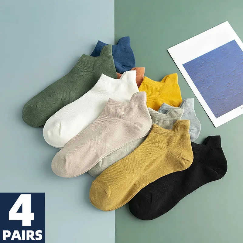 4 Pairs Man Cotton Short Socks Fashion Breathable Mesh Men Comfortable Casual Ankle Sock Pack Male Street Fashions