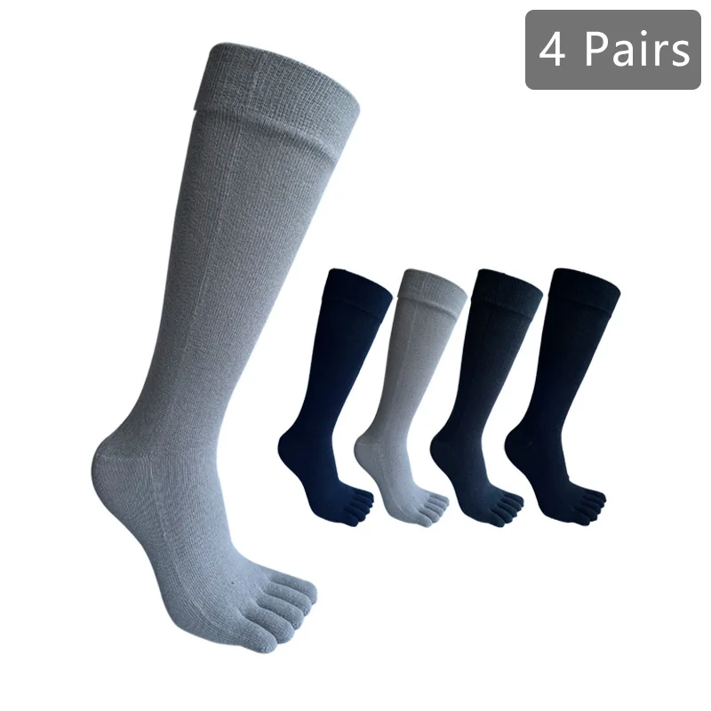 1/4 Pairs Men Toe Socks Long Cotton Simple Business Party Dress Stockings Gentleman Breathable 5 Finger Socks Calf 4 Seasons