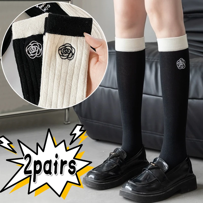 1/2pairs Black White Camellia Rose Socks Spring Autumn JK High and Thin Japanese Long Leg Socks High Tube Warm Cute Cotton Sock