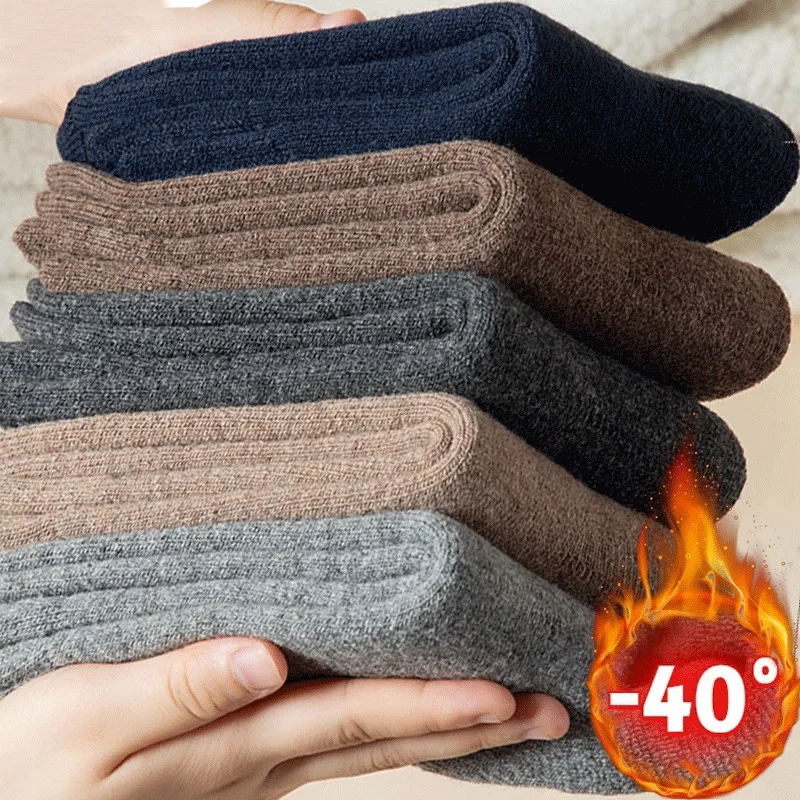 Winter Merino Wool Socks for Men Super Thick Warm High Quality Harajuku Retro Snow Casual Antifreeze Cashmere Socks Men 3 Pair