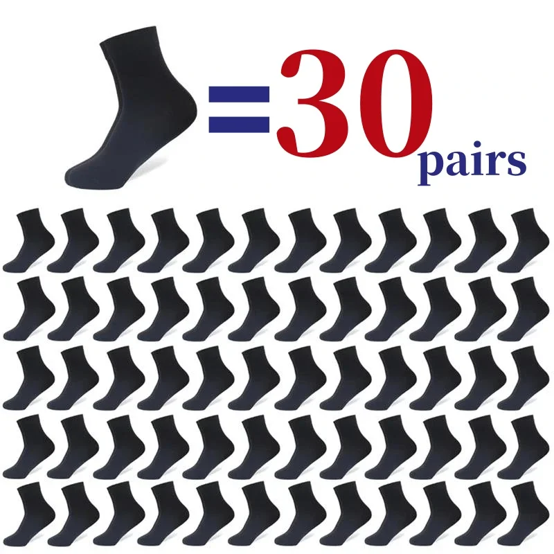 30Pairs/Lot Men's Socks Classic Black Business Mid-tube Socks Soft Breathable Deodorant Antibacterial Casual Men's Socks EU38-45