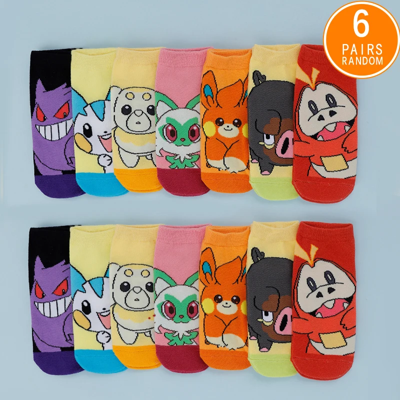 6 Pairs of Randomly Combined Funny Pok é mon Family Cartoon Anime Patterns Men's Crew Socks Outdoor Casual Couple Socks